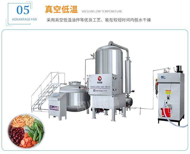 VF真空低溫油炸機顛覆了傳統意義上的工作時間長、工作效率低的傳統概念。通過大量的客戶反饋和加工各種產品的經驗,我公司對設備進行了升級。與傳統真空油炸機相比,VF真空低溫油炸機的工作效率提高了30%。此外,我們公司的每一個設備部件都有存檔,便于為客戶提供方便快捷的服務。